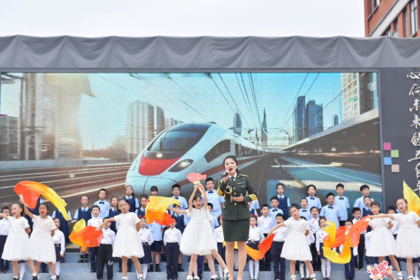 9月30日,华师中旭学校“赓续抗战精神 颂歌献给祖国”国庆合唱校级展演活动在学校党支部书记康宗芬与孩子的对话中拉开帷幕。
