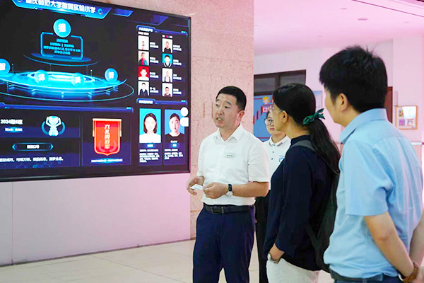 活动期间,专家们走进重庆大学城沙坪坝小学校、重庆师范大学附属实验小学,参观学校在人工智能教育和教育数字化方面的成果,并聚焦教育数字化和人工智能教育的成果、策略、困惑等主题与区教育事务中心教研室人员、学校校级干部、教师代表展开深入交流。