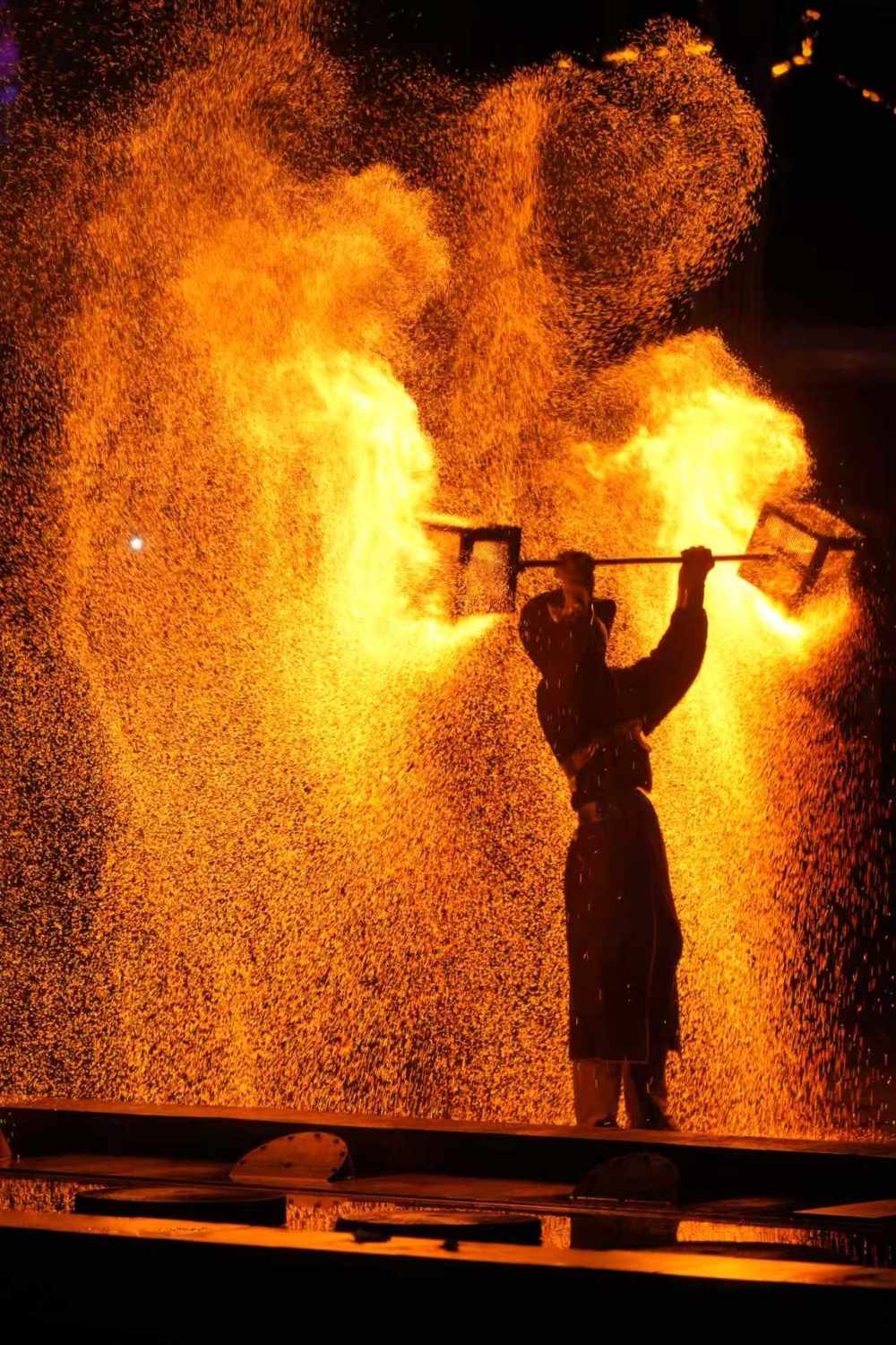 江北区“渝味360碗”陶然居国潮美食街区成文旅融合新地标。非遗打铁花、火壶表演、川剧变脸等传统技艺轮番登场。每晚,这里化身非遗剧场,传承人将1600℃铁水泼向夜空,化作金色瀑布;火壶舞者以火为墨绘光影图腾,与川剧变脸、杂技等共同营造沉浸式体验。