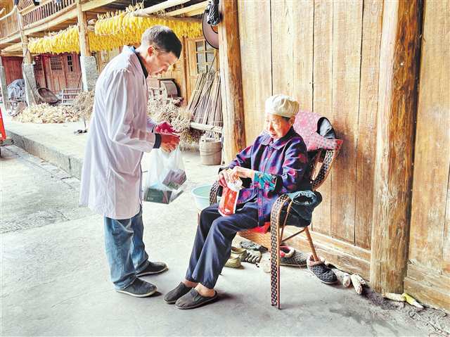 九月二十五日,孟春生上门给村民送感冒药。记者 周传勇 摄\视觉重庆