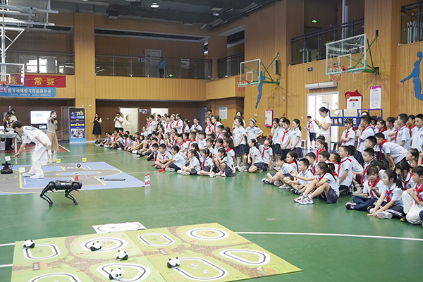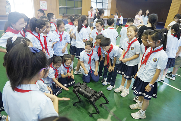 机器狗与同学们热情互动。