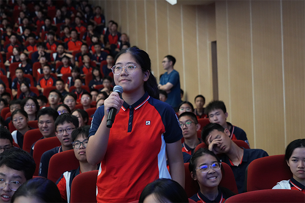 互动环节,重庆一中高一(5)班同学张雅涵提问。