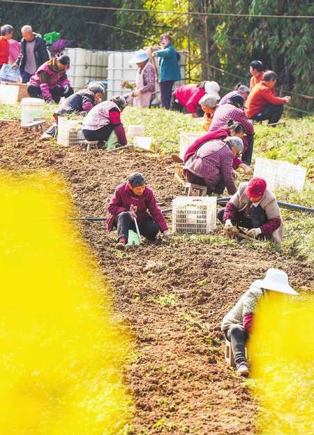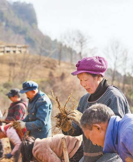 垫江县杠家镇临江村中药材基地,工人正忙着分拣药材,准备移栽。通讯员 龚长浩 摄