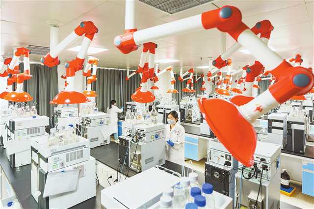 位于南川区大观镇中医药园区的重庆上药慧远庆龙药业有限公司,研究人员在进行中药材质量检测。其智能煎配中心,每天可代煎处方超过500单。记者 李雨恒 摄/视觉重庆