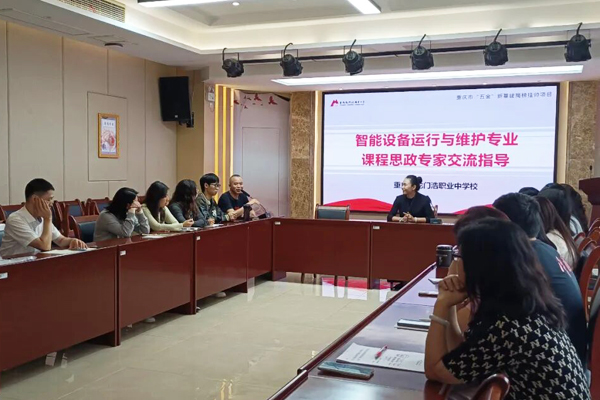 为深化学校“五金”新基建揭榜挂帅项目建设,推动课程思政与智能设备运行与维护专业教学深度融合,近日,重庆市龙门浩职业中学校特邀重庆工业职业技术大学电气工程学院党总支书记、副院长陈泓吉来校,开展课程思政专题指导活动。活动面向智能设备运行与维护专业全体教师,旨在通过专家引领,淬炼“金师”队伍,锻造“金课”体系,为“五金”建设注入思想内涵与发展动能。