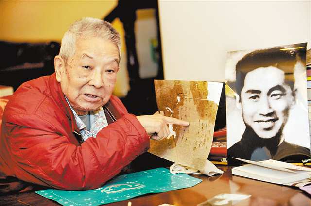 2009年11月,时年90岁的周永林嘱儿子周勇前往白公馆祭奠黎又霖烈士,并拿回黎又霖烈士遗像和遗诗(复制件)。(受访者供图)