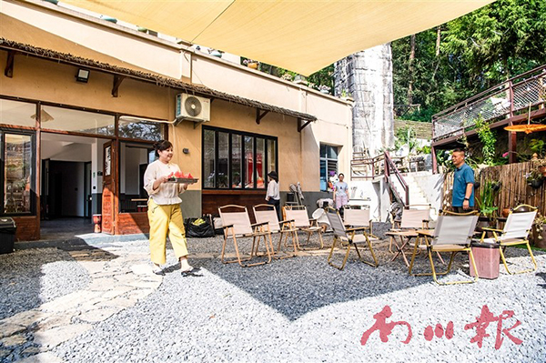 大有镇水源村桥边小院民宿,工作人员在为游客做服务工作。资料图片