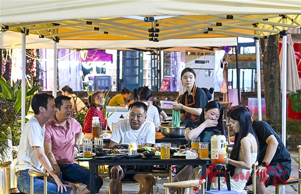 “过去从老家德隆镇到南川城区,我总要比同学多穿件外套,那时候不懂,现在才明白,这就是南川最宝贵的避暑优势!”在南城街道经营“夜宴烧烤”的王俊杰说道,家乡的清凉气候吸引游客,烧烤店经营得红红火火。每到傍晚,店里的豆腐皮、苕皮、方竹笋“烧烤三件套”就成了游客必点菜品,滋滋冒油的烤串伴着欢声笑语,成了南川夏夜最动人的图景。