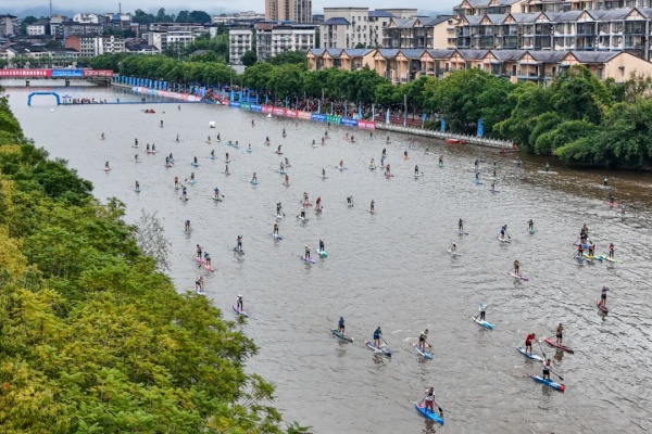 龙溪河畔,桨板竞逐,浪花飞溅;沿河两岸,人声鼎沸,活力奔涌。