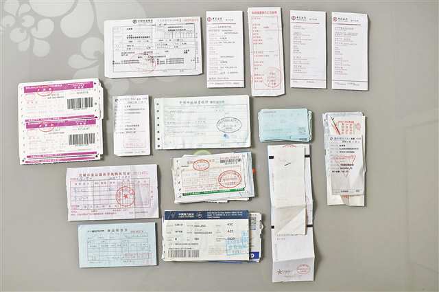 受父亲记账的影响,汪贵贤收藏着近20年来的各种工资单、购物收据、车票、飞机票等各类票据500余张,“我想着通过这些票据,记录自己经历的事情和收支明细。”