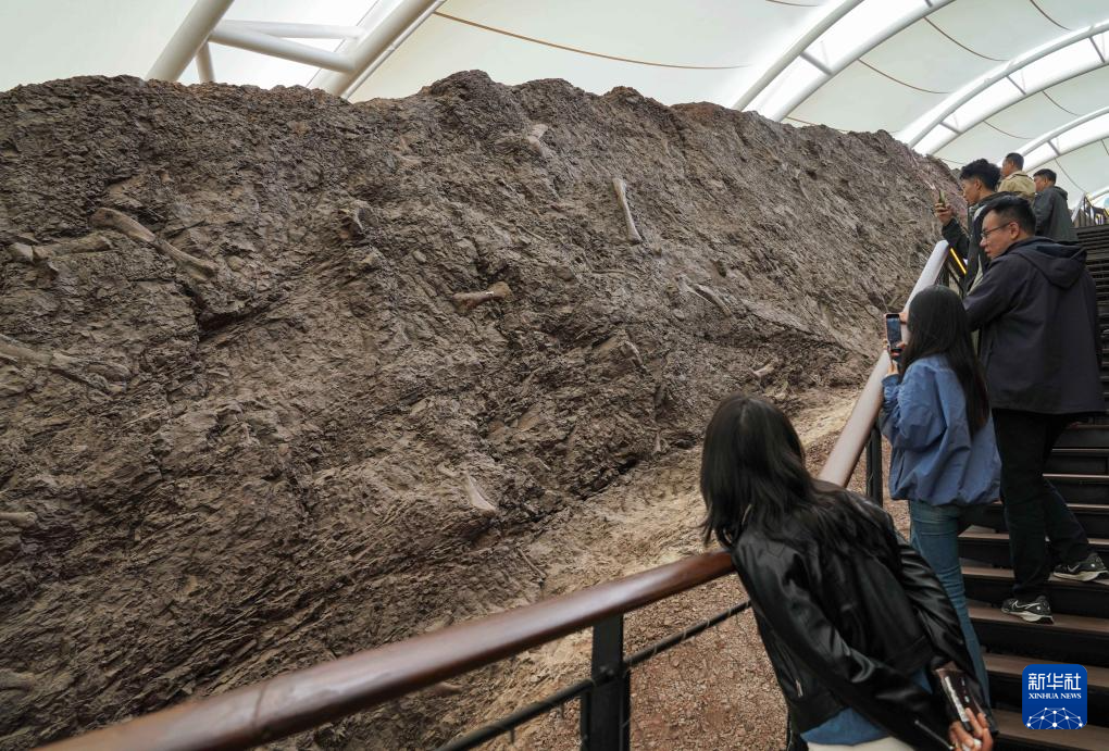 10月26日,人们在重庆云阳世界地质公园的恐龙化石遗址馆参观。新华社记者 周佳谊 摄