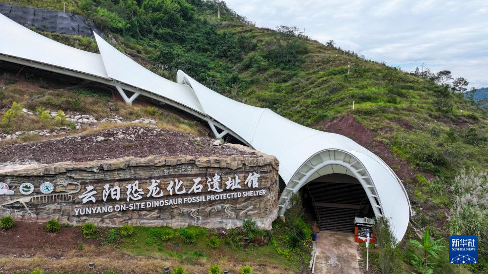 10月26日拍摄的重庆云阳世界地质公园恐龙化石遗址馆入口(无人机照片)。新华社记者 刘潺 摄