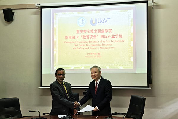 重庆安全技术职业学院与斯里兰卡国家职业技术大学签订合作备忘录。