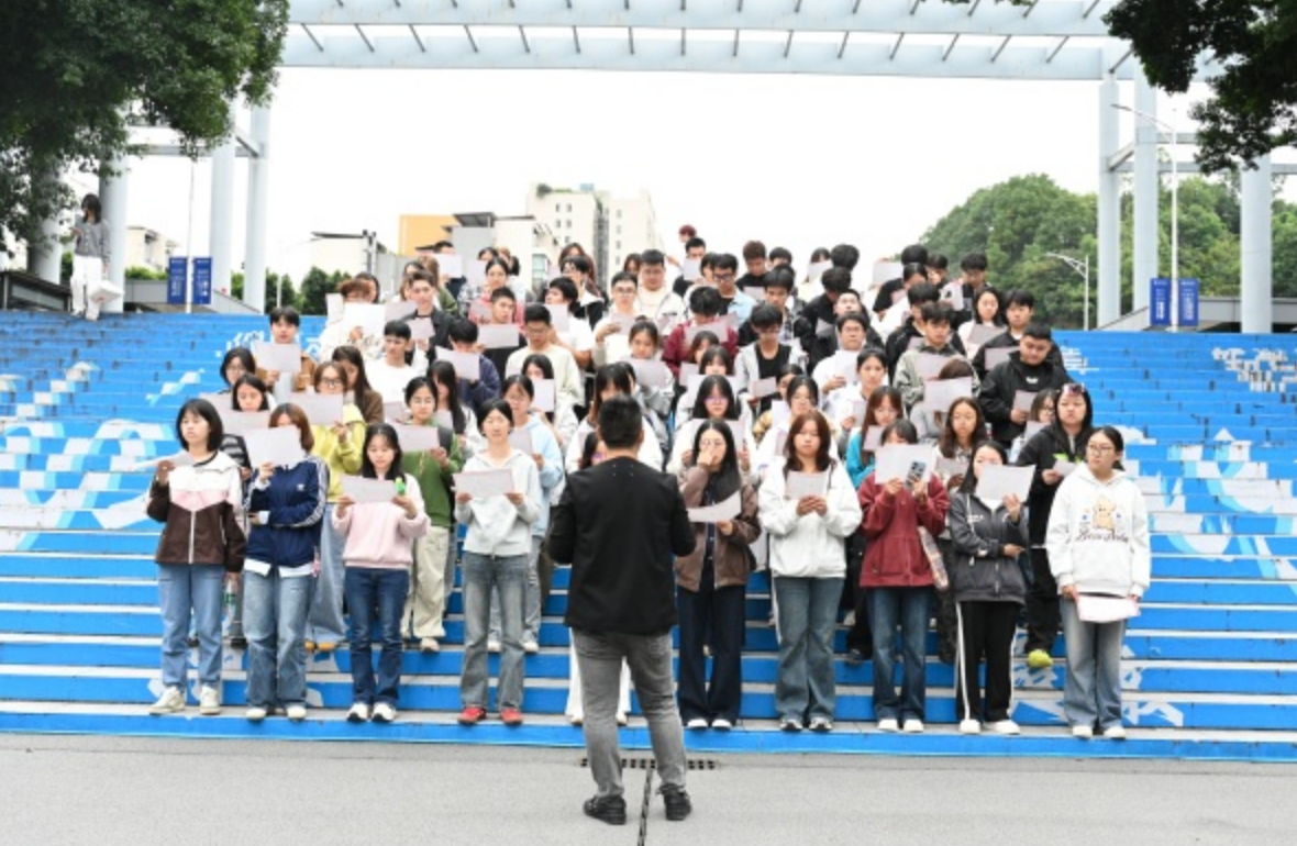 学风建设直击学生需求,鱼城书院金鑫老师将英语四六级高分作文融入正念思维,带领百名学生以“LIFE IS ALL ABOUT CHOICES”为题集体诵读,参与的学生表示:“集体诵读很有氛围感,难记的句型跟着读几遍就记住了,比自己埋头背效率高多了。”