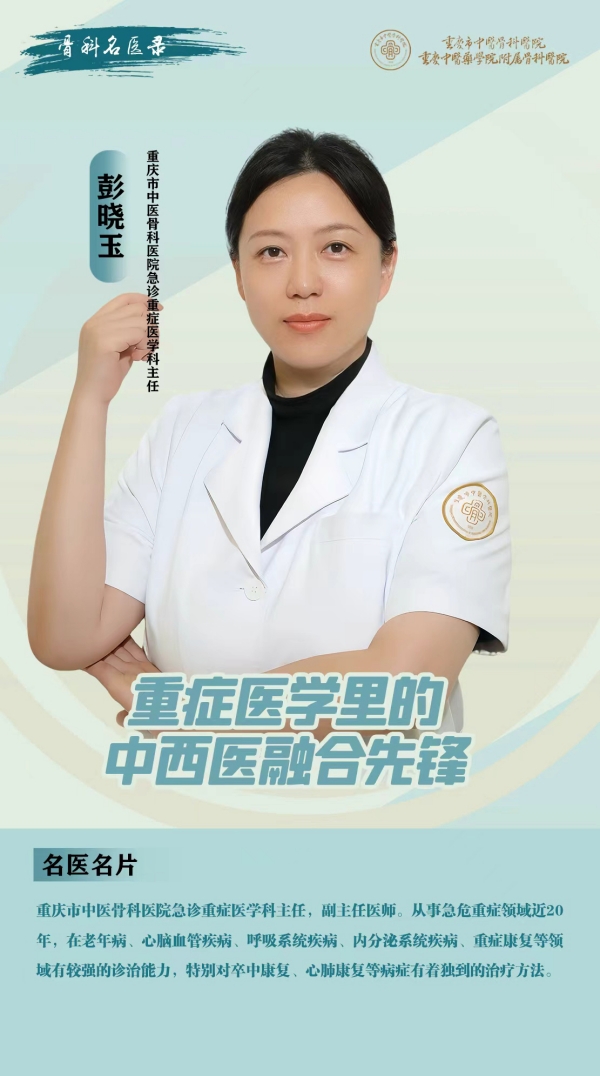 在医疗救治的关键领域,急诊重症医学科是守护急危重症患者的“生命最后一道防线”,重症医生则是肩负生死抉择的“守门人”。重庆市中医骨科医院急诊重症医学科主任医师彭晓玉,在急危重症领域深耕近二十载。她秉持中医整体诊治观念,积极探索中西医结合在急危重症救治中的应用,致力于让每一位急危重病患者转危为安,成为患者“信得过、靠得住”的医者。