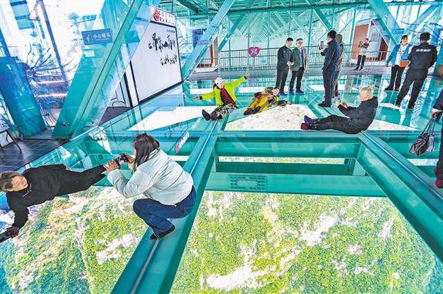 10月23日,众多游客在花江峡谷大桥的观光通道体验打卡。 记者 郑宇 摄/视觉重庆