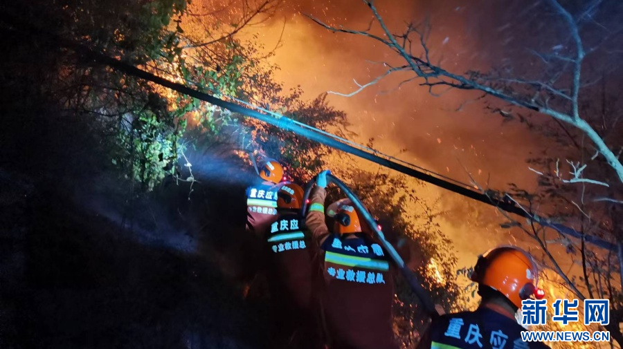 重庆市专业应急救援总队在森林火灾现场进行清理火场作业。新华网发(资料图)