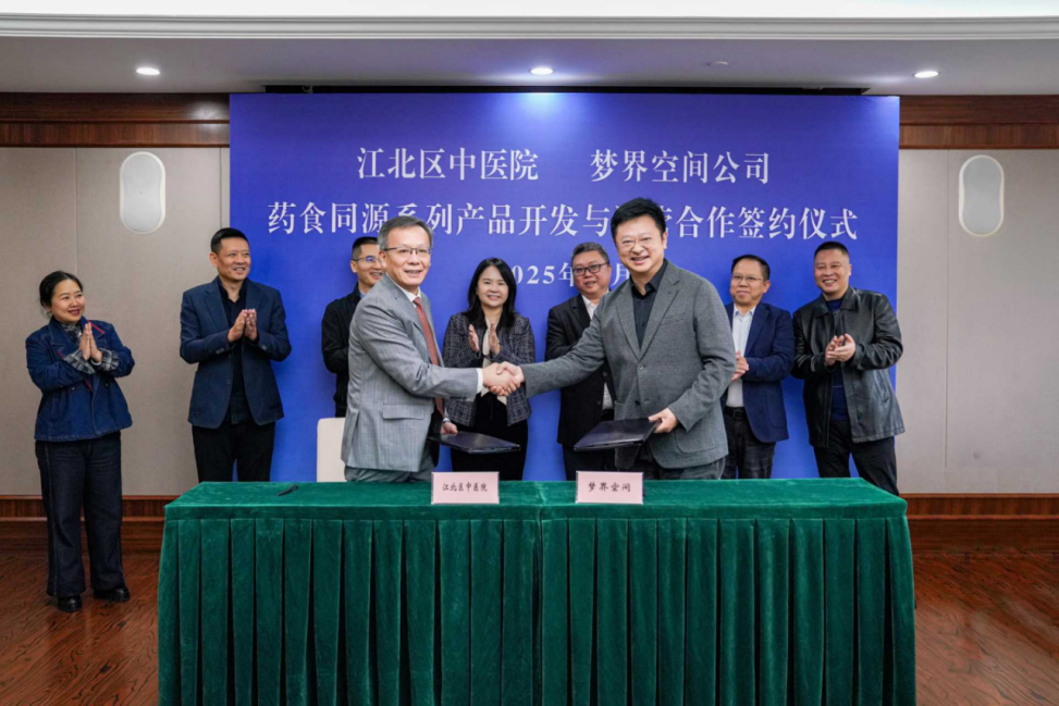 10月31日,重庆市江北区中医院与梦界空间(重庆)数智科技有限公司举行“药食同源系列产品开发与运营合作”签约仪式。此次合作中,双方将围绕药食同源系列产品的开发、运营及中医产业衍生业务开展深度协作,覆盖产品研发、运营销售、中医文化传播等多个维度,致力于打造集 “医、养、食、健”于一体的健康服务新生态。