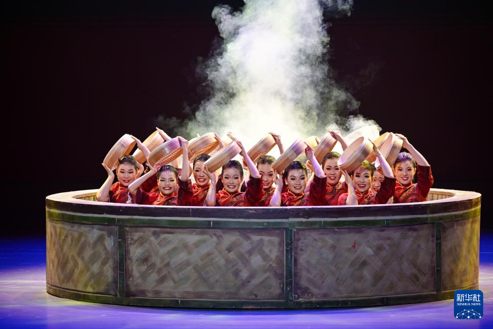 3分半钟的表演,她们围着一只巨大的“蒸笼”,如浪花一般起落、跳跃、舒展,用灵动的舞步演绎农家民俗场景。