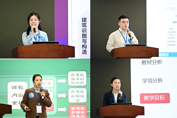 活动现场,各教师选手分别从学情分析、课程背景、教学设计、课程实施、教学反思等方面展开说课。在他们的展示中,既有探究式、小组合作式等创新授课方式的导入,充分调动学生的积极性和参与热情;又有工匠精神、行业规范、团队协作能力等思政元素的巧妙融入,引导学生树立正确的价值观、职业观。