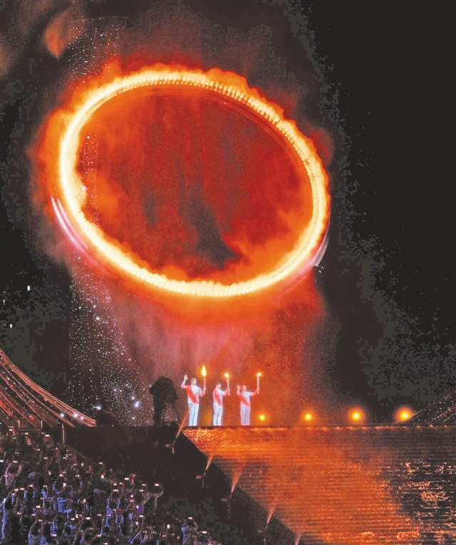 粤港澳三地火炬手共同点燃主火炬