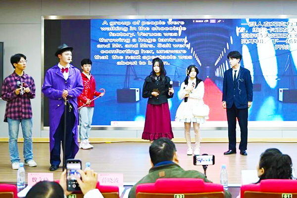 同学们自信流畅的表达、自然生动的演绎,赢得阵阵掌声。舞台上每一个细节都凝聚着各参赛团队的智慧与匠心,无论是对文学经典的忠实还原,还是基于理解的巧妙创新,都体现着同学们对作品的深刻理解与追求卓越的团队精神。现场互动问答环节更将活动再次推向高潮,同学们对经典英语文学作品知识踊跃抢答,展现广博的阅读面与扎实的文学素养。