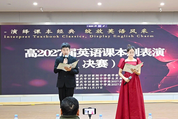 当英语课本中的经典篇章与同学们的无限创意相遇,会迸发出怎样绚烂的火花?近日,重庆市田家炳中学高2027届英语课本剧表演决赛精彩上演,不仅是一场语言艺术的演绎舞台,更是学生从“学英语”走向“用英语”的生动实践。
