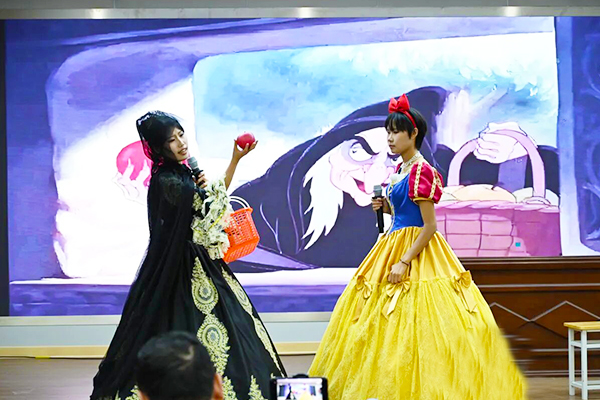 同学们以精彩演绎,再现童话故事《白雪公主》经典片段。
