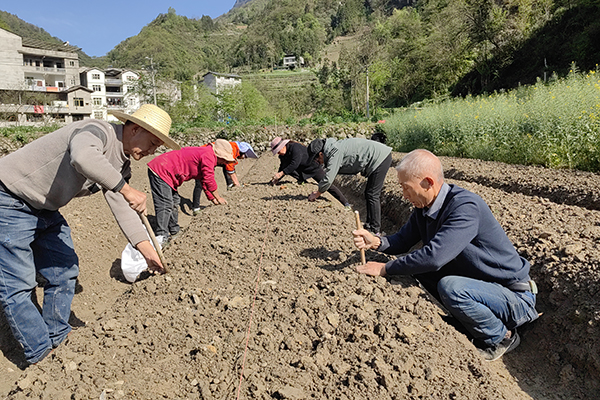 重庆工程职业技术学院“津硒-功能性农业”团队在城口县石兴村开展富硒葛根种植技术指导。