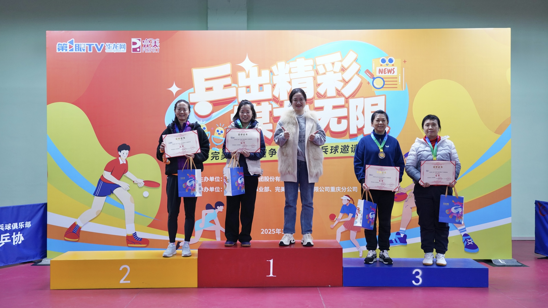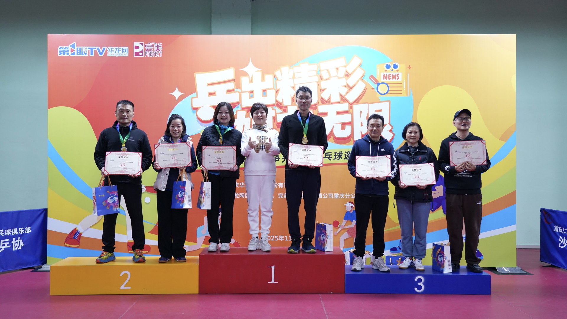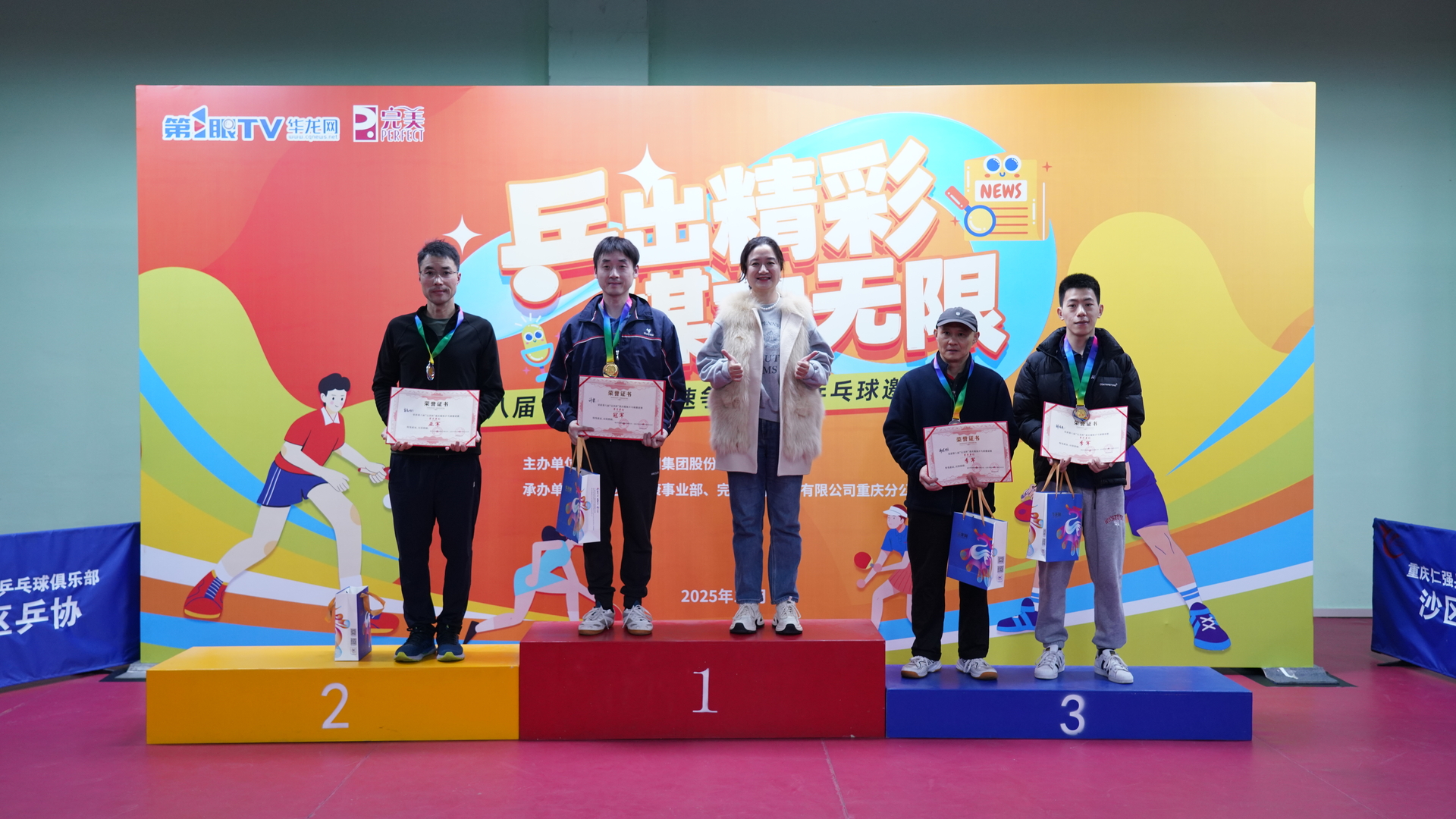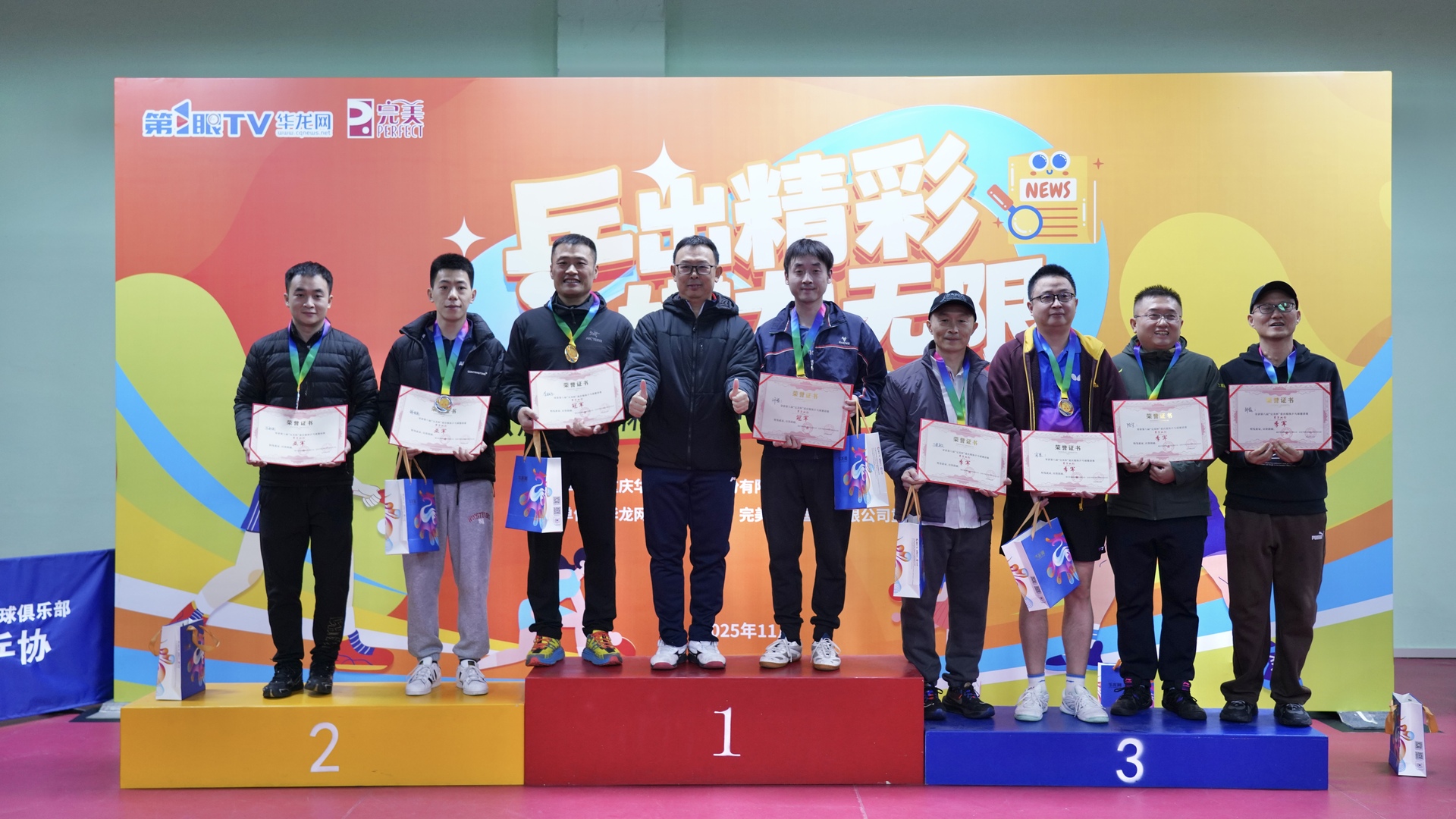 第1眼TV-华龙网讯 11月21日,由重庆华龙网公司主办,完美(中国)有限公司重庆分公司、华龙网健康事业部联合承办的“‘乒’出精彩 ‘媒’力无限”——第八届“完美杯”重庆媒体乒乓球邀请赛在热烈而温馨的氛围中圆满落幕。
