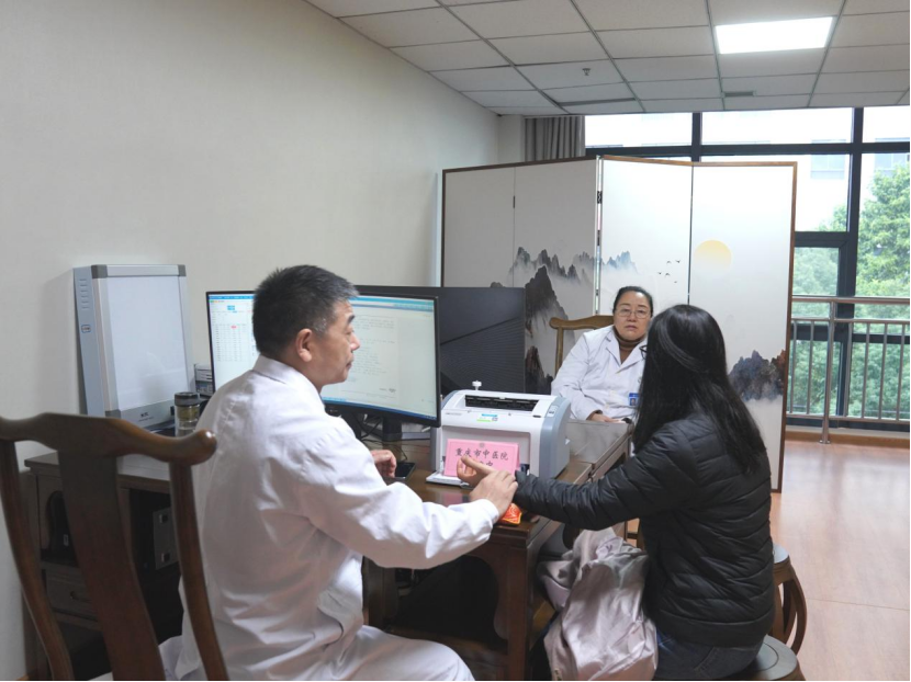 神志病中西医联合门诊由重庆市中医院神经内科(脑病科)中西医结合主任医师舒建中与重医附一院精神科主任医师况利联合坐诊。在候诊区,一对夫妇正在等待叫号。妻子表示,她身患多种基础性疾病,一直在接受西医治疗,如今疗程即将结束,正考虑后续的康复调理。“今天看到这个联合门诊,觉得特别适合我,”她说,“我正想借助一下中医康复手段来巩固效果,现在一次挂号就能得到连贯性的方案,真的很方便。”