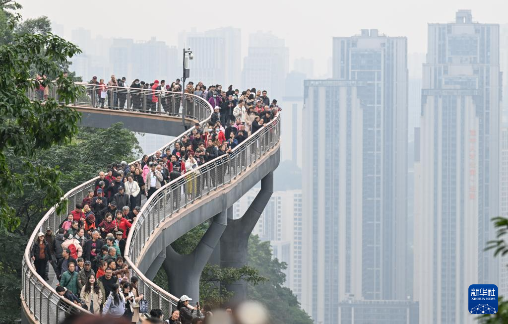11月24日,人们在重庆半山崖线鹅岭栈桥观光。新华社记者 陈诚 摄