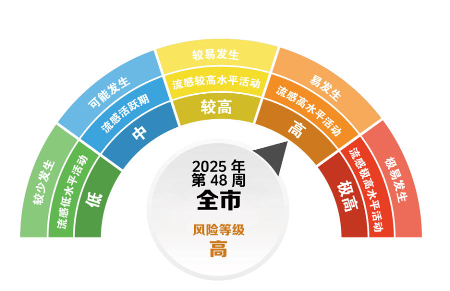 高风险等级,则意味着流感发病水平显著升高,进入流感流行高峰期。专家建议,除强化上述防控建议外,如学校、托幼机构等集体单位内出现大量流感样病例时,积极配合执行相关防控措施;如出现病情加重,需立即就医,本人及家属积极配合做好流行病学调查及相关防控措施。