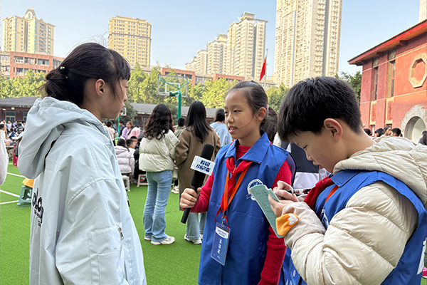 校园小记者们在活动现场认真观察、积极记录所见所闻。