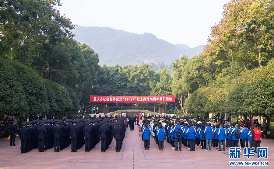 新华网重庆11月27日电(陶玉莲)2025年11月27日上午,重庆市社会各界纪念“11·27”烈士殉难76周年祭扫活动在歌乐山烈士陵园举行。烈士亲属、部队官兵、机关干部、社区群众及大中小学生代表约650人齐聚烈士墓前,缅怀革命先烈,弘扬红岩精神。