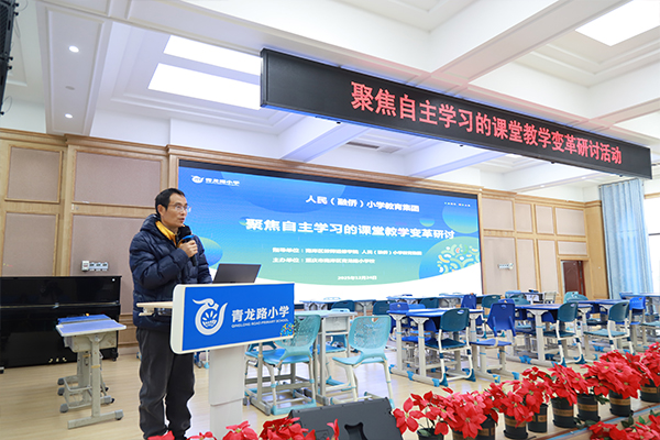 青龙路小学党支部书记、校长赖琍在致辞中指出,自主学习是培养学生核心素养的关键,课堂教学应坚持学生为本,引导学生主动探究、合作学习。她强调,本次活动通过深化课程与自主学习融合的教学改革实践,为学校教育教学注入新活力,希望全体教师以此次活动为契机,积极反思、大胆实践,共同推动教学质量全面提升。