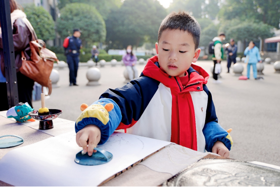 小朋友正在体验药材拓印。