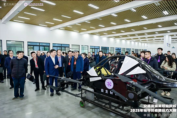 比赛期间,中国交通教育研究会领导、嘉宾、比赛领队及观摩人员参观了学校全国样板党支部、汽车文化馆、低空技术中心、全息超时空互动教学平台教室等产教融合实训基地,共探育人路径,交流实践经验。