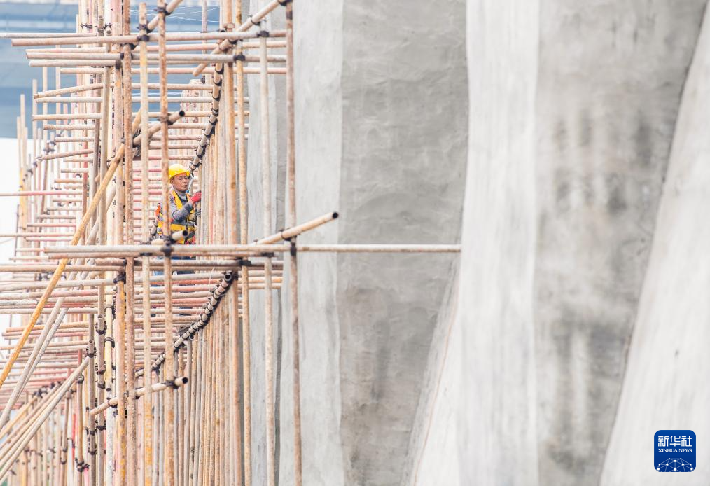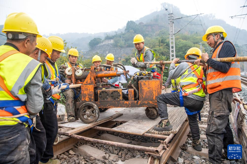12月11日,工人在成渝铁路扩能改造工程黄磏至铜罐驿站区间进行收尾工作。新华社记者 唐奕 摄