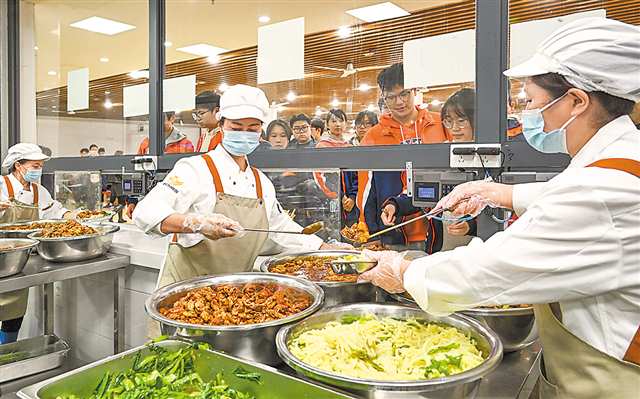 两江育才中学校,食堂工作人员在为学生们打饭(摄于十月二十九日)。记者 张锦辉 摄\视觉重庆