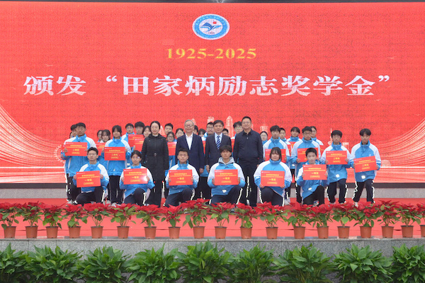 郭竞分享了其个人成长经历与对母校的深厚情感,萧开廷回顾了基金会与学校的渊源,并代表基金会为优秀学生颁发“田家炳励志奖学金”……他们从不同视角共同回顾了学校百年来坚守“育人为本、立德树人”初心、服务地方的奋斗历程,肯定了学校在人才培养、特色发展方面取得的扎实成就。