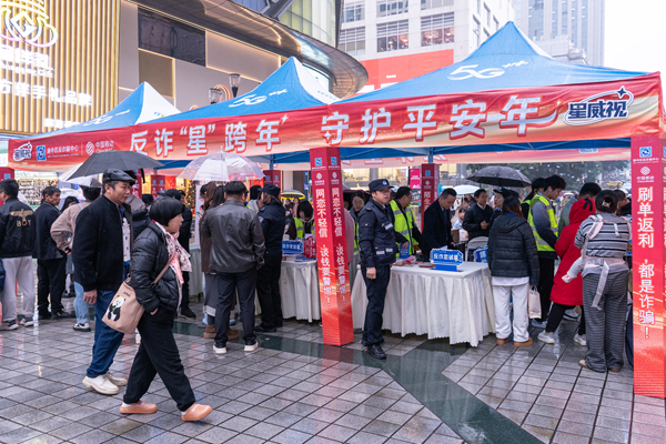 为筑牢岁末年初反诈防线,守护市民平安跨年,12月30日,由重庆市渝中区反诈中心主办、重庆移动渝中区分公司协办的“反诈‘星’跨年,守护平安年”主题宣传活动在重庆市渝中区解放碑步行街成功举行。