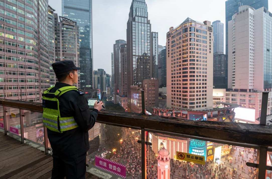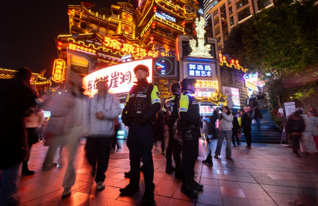 2026年元旦期间,重庆市节日氛围浓厚,也迎来了客流高峰。重庆市公安局民警坚守岗位,聚焦商圈景点、交通枢纽等重点区域,开展巡逻防控、交通疏导、便民服务等工作,以保障市民和游客度过一个安全祥和的节日。