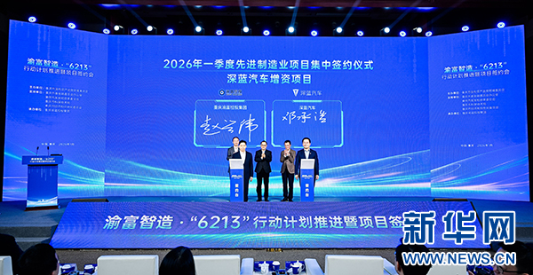 1月8日,渝富智造·“6213”行动计划推进暨项目签约会举行。这是现场签约深蓝汽车增资项目。新华网发未来5年1000亿元投向先进制造业