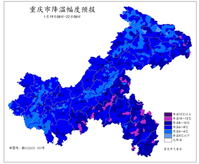 具体来看,重庆大部地区日平均气温下降7℃至10℃,中东部海拔1000米以上地区可达10℃以上;21日到22日,大部地区最低气温将降至1℃至7℃,海拔1000米以上地区降至0℃以下。冷空气影响时,山口河谷地区有4至6级偏北风。