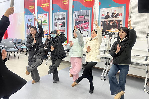 戏剧工作坊中,教师参与互动体验。