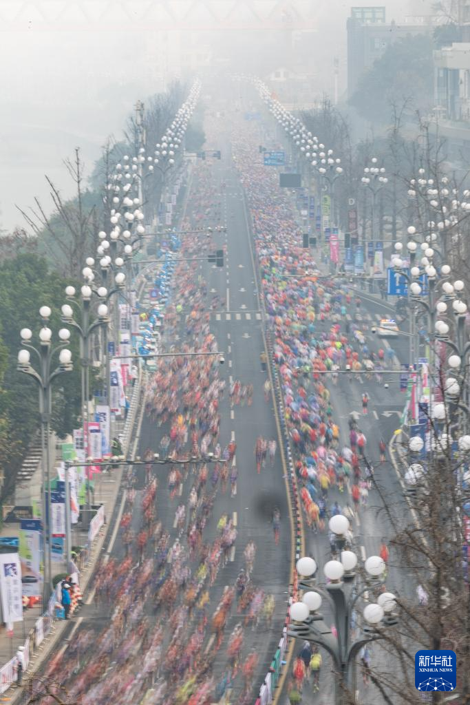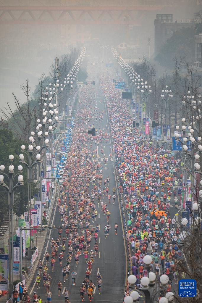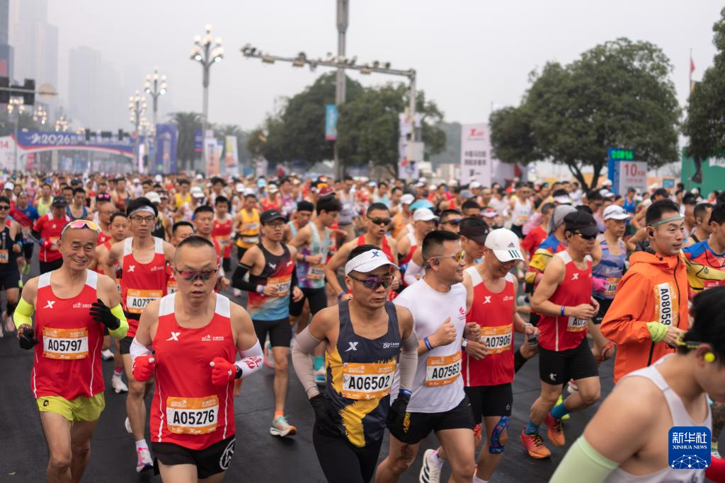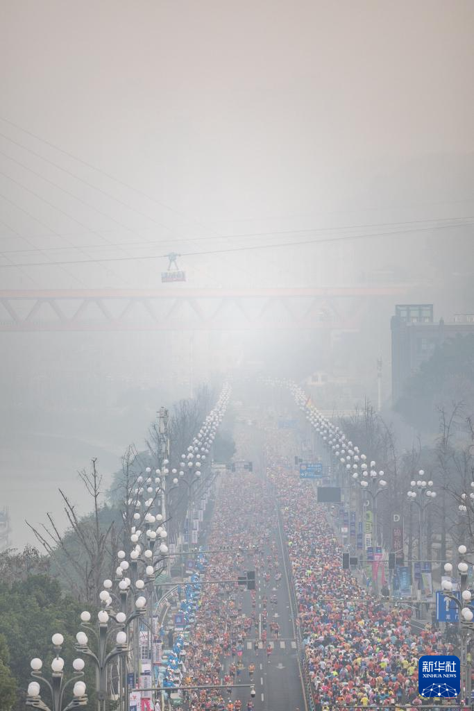 当日,2026重庆马拉松赛在重庆市南岸区南滨路烟雨公园鸣枪开跑,共有来自26个国家和地区的约2.5万名选手参赛。