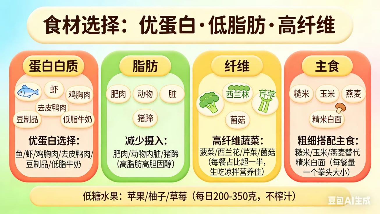 食材选择:合理搭配,优蛋白、低脂肪、高纤维