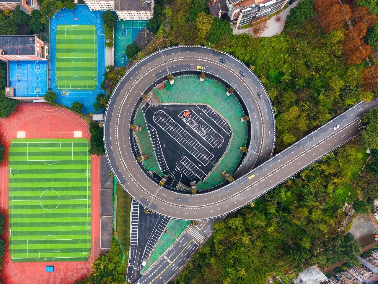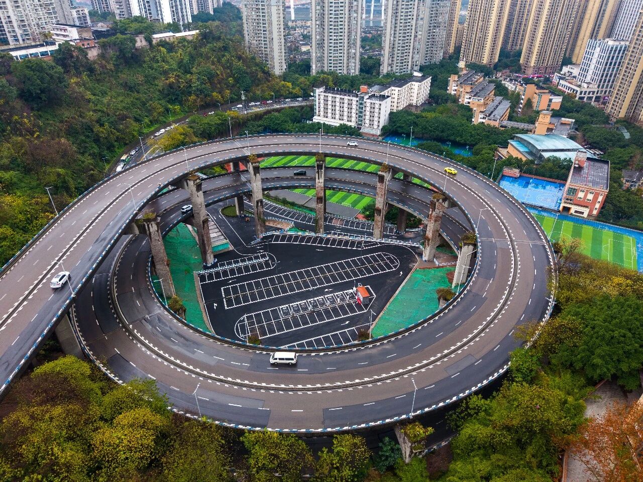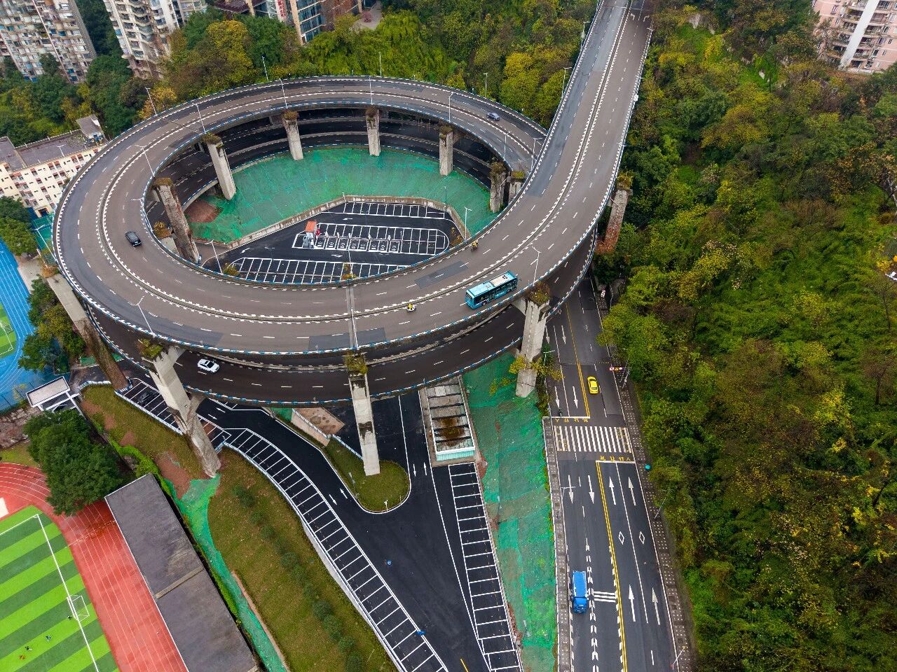 重庆南岸:网红转转桥 荒地变身停车场-新华网