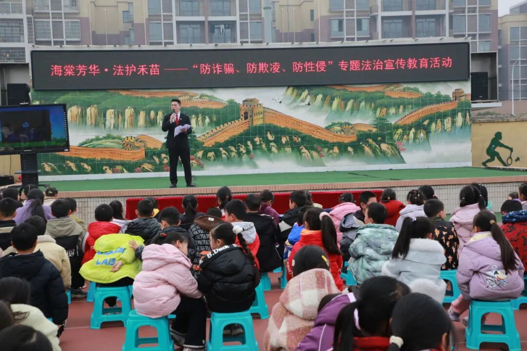 寒假将至,为有效防范校园欺凌、性侵害、涉未诈骗等事件发生,切实增强未成年人法治意识与自我防护能力,日前,重庆市荣昌区人民法院组织刑庭、安富法庭(家事少年法庭)干警走进广顺小学,以“海棠芳华・法护禾苗”为主题,开展“防欺凌、防性侵、防诈骗”法治宣传进校园活动,以司法温度为青少年健康成长保驾护航。